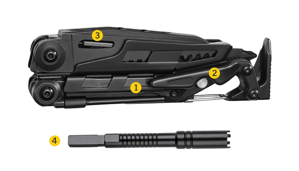 • 01 Handle Bit Storage Conveniently store Leatherman tool bits in your multi-tool’s handle for easy access during a job, or for safekeeping.